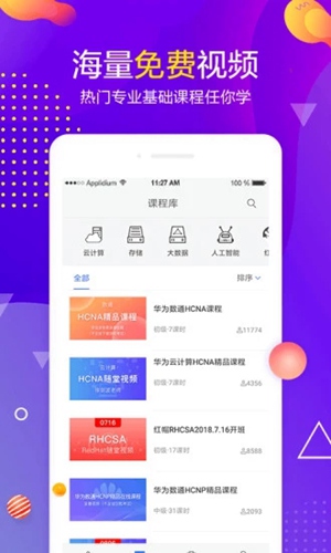 通过平台即可轻松选择心仪课程类别进行学习内容挑选;
