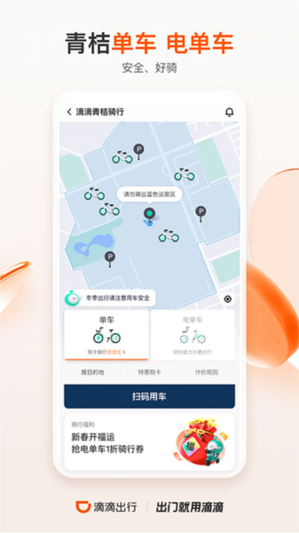 3、低碳环保:滴滴公交、单车,短距离青桔单车,长距离公交路线指引,让低碳出行更便利