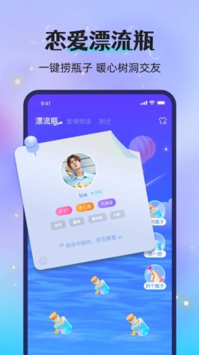 漂流瓶恋爱安卓版是一款由深圳市新泽频科技有限公司推出的恋爱聊天交友APP,采用独特且复古的漂流瓶玩法,让自己能够和意外之中的ta来一场美丽的邂逅。在漂流瓶恋爱app中有着来自各个地方的用户,你能够结识到五湖四海的朋友,尽情的畅所欲言。找到和自己的志同道合的朋友们,遇见那个让你心动的人,收获属于自己的缘分,感兴趣的用户欢迎前来下载吧!