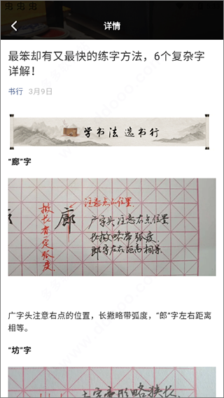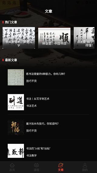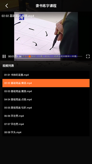 3、进入课程模块,免费观看书法相关视频与文章内容;