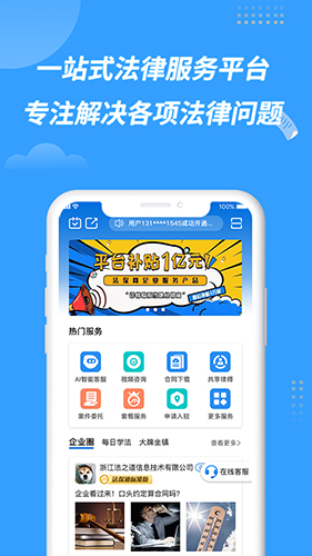 2、软件首页提供的热门服务可以帮你快速解决法律咨询、合同等相关问题。