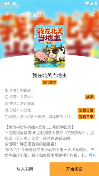 3、点击封面进入到小说详情页。