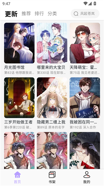 首页就是更新,每天更新了哪些新漫画和章节,一目了然。