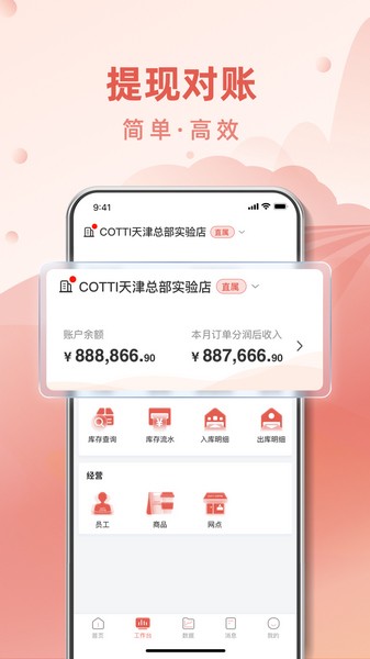 【库存】COTTI合作伙伴app支持门店订货、收货以及库内盘点等相关业务操作;移动端高效处理库存的相关业务。