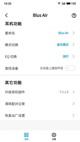 2、EQ调节和查找耳机功能: 通过APP自定义调节触摸设置和EQ音效,轻松查找遗失的耳机。
