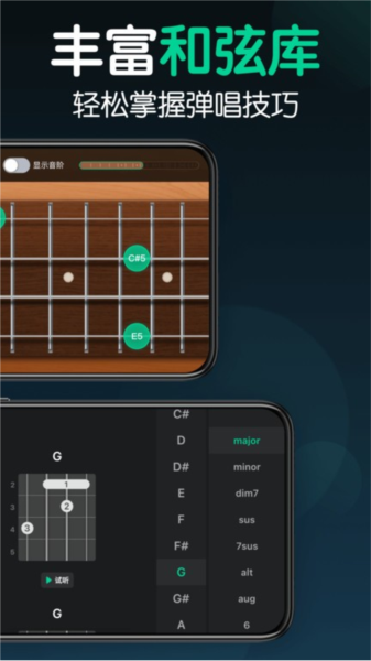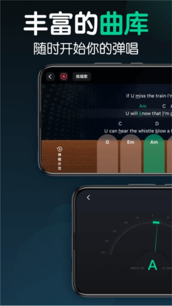 2. 【和弦库】:丰富的和弦练习和自定义和弦编辑,让用户更轻松地弹唱歌曲。