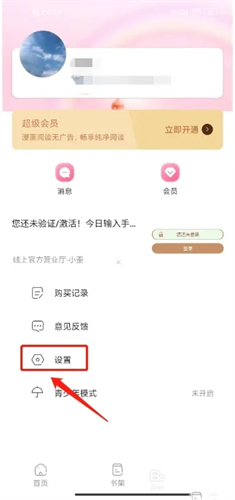 1、进入可乐漫画app右下角"我的",点击【设置】。
