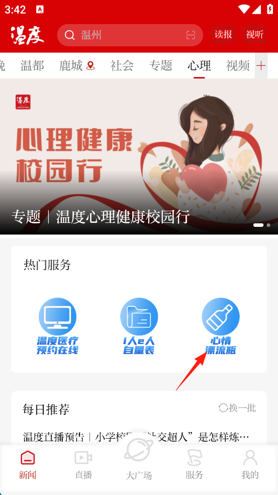 2、点击屏幕右边的“心晴驿站”。