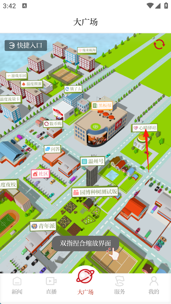 1、点击屏幕下方的“大广场”。