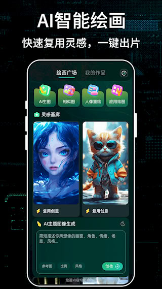 1、支持关键词输入,激发创意想象,将平凡词汇转变为独特画作。