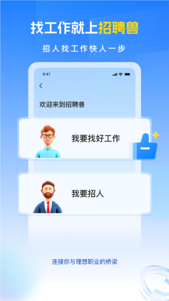 1、打开招聘兽app,选择招人或求职身份即可使用