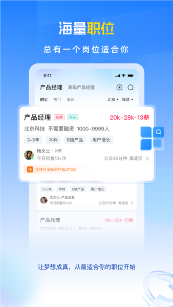 根据你的求职需求,智能匹配合适的岗位,找工作更方便;