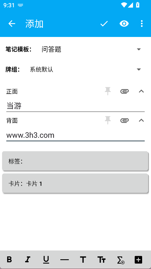 提供灵活的卡片类型编辑功能,用户可根据不同学习目标创建专属模板,适配各类记忆内容结构。