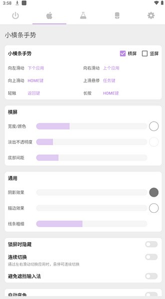 gesture小横条是一款相当好用的辅助工具,专门为安卓用户打造,大家不仅能够借助这款软件来快速拥有iOS系统标志性的小横条,还可以自定义小横条的长度以及颜色、位置等等,从而获得理想的呈现效果。此外,Gesture这款小横条软件还能够带给大家更智能的手机使用体验,同时支持多种不同的手势导航操作,方便极了。