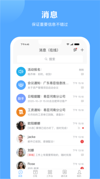 在线就可以和所有的人进行沟通交流,不用来回奔走,告别了传统的办公模式,可以缓解我们的工作压力。