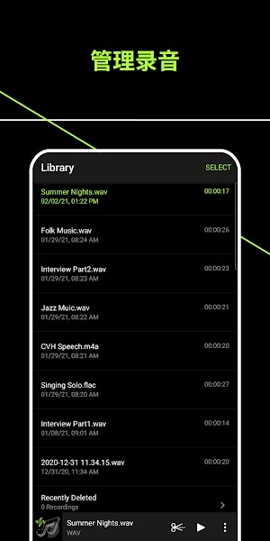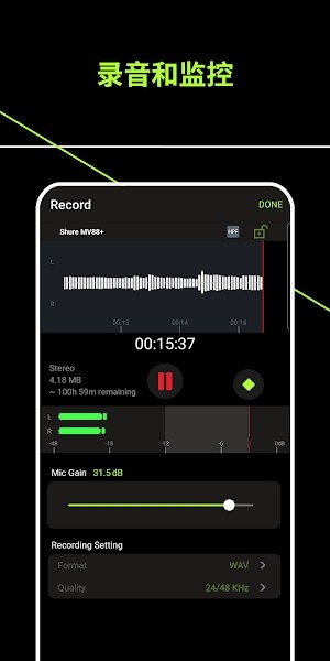 1. 支持使用内置麦克风录制高品质非压缩WAV格式音频;