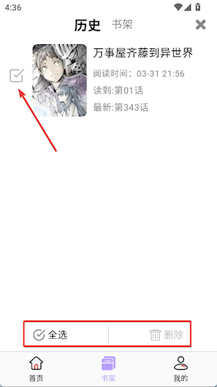 3、单选或全选,点击删除