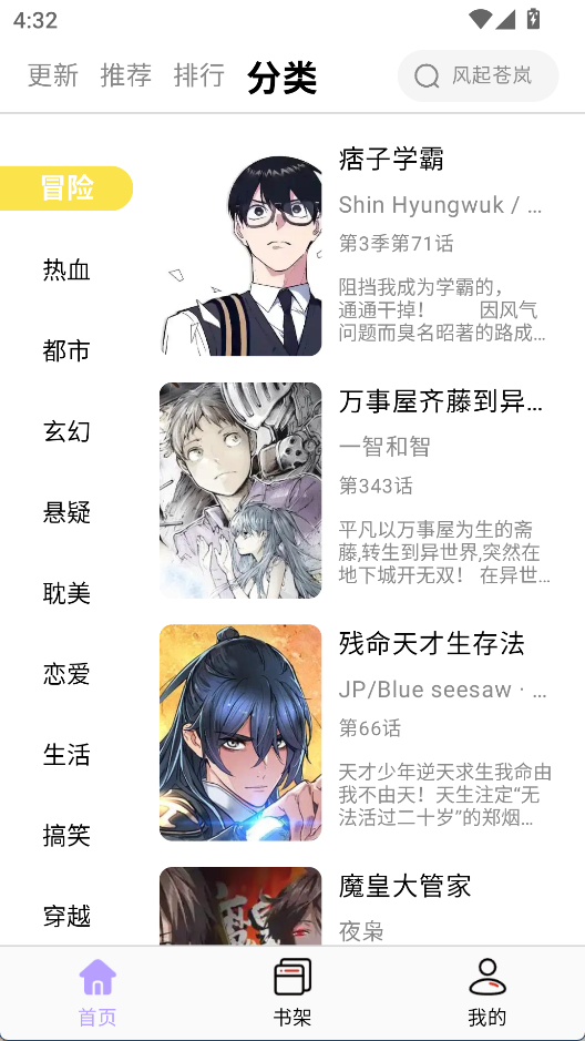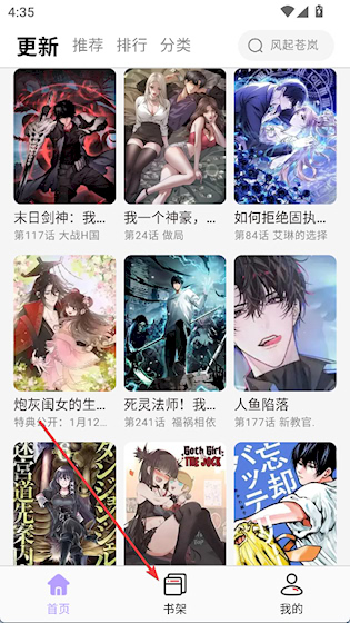 首页设有排行榜、更新区、题材分类等板块,便于快速发现新作或追踪正在追更的作品,结构清晰,查找效率高。