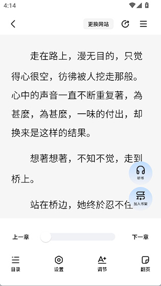 在阅读界面可一键开启听书功能,解放双眼,适合通勤、休息等场景,让小说内容以语音形式伴随左右。