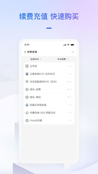 2、移动端便捷购续服务:无需依赖电脑,即可完成云服务器、数据库、CDN等产品的购买与续费,彻底告别“错过续期”风险。