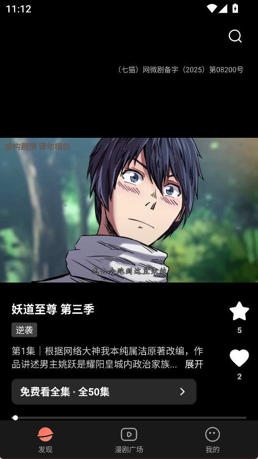 2、“漫剧广场”界面提供热门的视频推荐