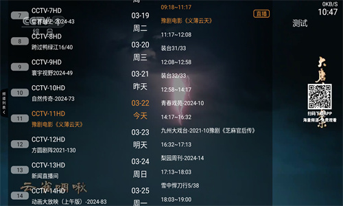 5、在软件内可以操作自己想看的频道,只要是已经播出的都能看回放,没有播出的无法播放。