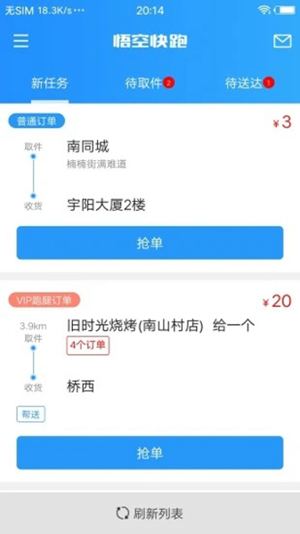 1、随时可以刷新订单列表,能够及时的发现最新的配送订单;