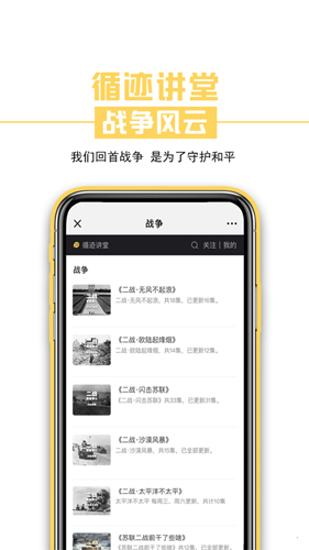 2、客户可以根据不同的方面来选择自己的课程,中国、世界、战争、人文等等