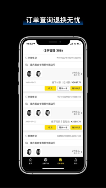 2、多维度搜索:提供非常实用的搜索查找功能,支持按车型、尺寸、纹路等多维度筛选,一键快速查找需要的商品。