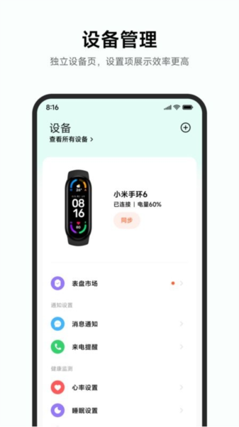 可以在小米运动健康App里设置你所需要的应用通知或事件提醒,例如微信、短信等,通过手表手环随时提醒你,不让你错过任何一个重要时刻