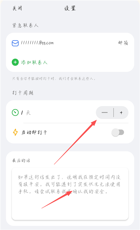 4、可设置打卡周期,并在下方【最后的话】中写下求助的话。