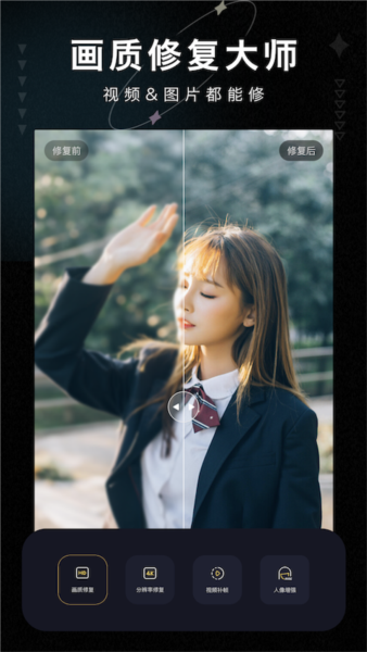 画质修复大师是一款由重庆树袋熊信息技术有限公司开发图片修复使用功能软件。该软件功能丰富多样,不仅可以修复模糊、失真、色差等问题,还可以修复黑白照片、老照片和复古照片等不同类型的照片,提升图片细节纹理和色彩。软件界面简洁,操作简单,提供多种修复模式和预览,还有批量处理功能,效率相当高。它支持多种图片和视频格式,严格保护隐私,适用于普通用户、爱好者及专业人员等群体。