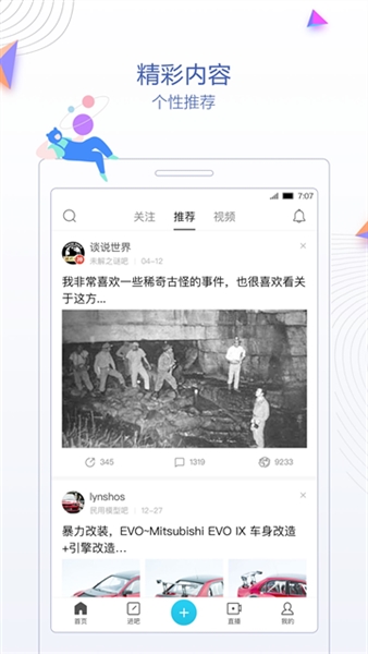 也可以根据个性化需求关注用户喜欢的贴吧,最新的精品贴子、图片、视频、热门转贴等内容都可以通过我的贴吧获取。