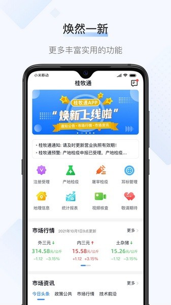 桂牧通app是一款专为养殖场推出的智能监控农场以及智慧养殖管理的应用软件,用户使用了这款软件,可以在手机APP上就能了解整个养殖场内所有动物的生长情况;以及系统性的整理和统计每月、季度的存栏、出栏、病害情况等数据;对饲料、设备以及药物的数量都能知晓,更加方便用户管理好自己的养殖场。app还为用户带来每天最新的行业资讯和每日行情,提供线上的科学畜牧养殖知识学习平台,帮助用户能够更加轻松的管理养殖场,提升养殖产量,增加收益。