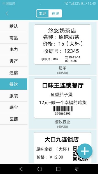 2、用户可以在此找到各种标签的模板,如商品、餐饮、服装和珠宝等标签模板
