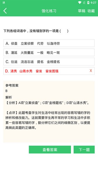 在答题后可以查看成语题目的参考答案和解析,查看题目的答题方法;