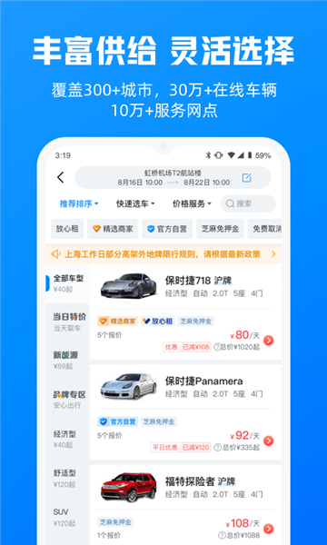 提供了海量优质车源可以为用户租车带来充足的车源信息;