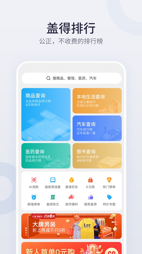 1、盖得排行,查询各种商品品牌排名的App。