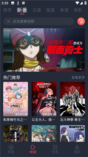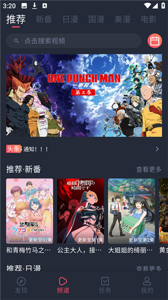 1、下载后打开软件就能看到各种最新番剧的推荐。