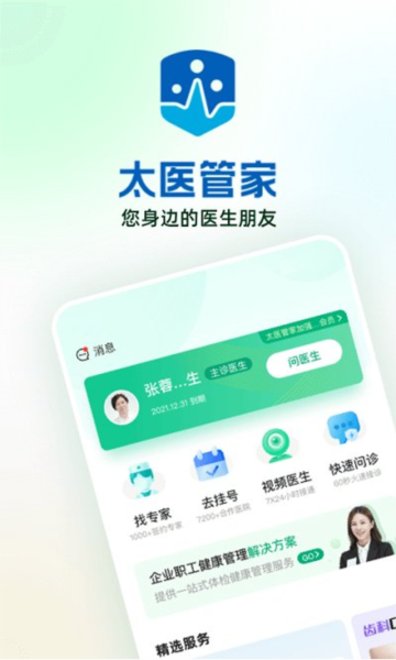 太医管家app是一款致力于提供全方位健康服务的专业应用,通过科技的力量,让医疗咨询变得触手可及,无论何时何地,都能享受贴心的健康管理。太医管家软件以科学为基础,集合了多位专业医师与健康管理专家,为用户提供个性化、科学有效的健康解决方案。专业的医生线上实时问答,覆盖了全国多家医院,为用户的身体健康保驾护航,随时随地线上问诊非常的方便,为每一位用户提供全方位健康服务。