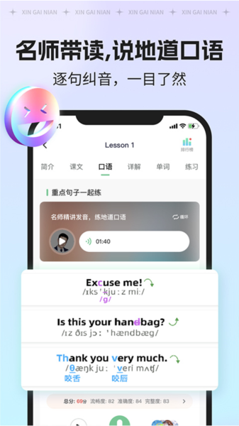 2, 真人纠音:智能口语测评,准确读音,练就流利口语。