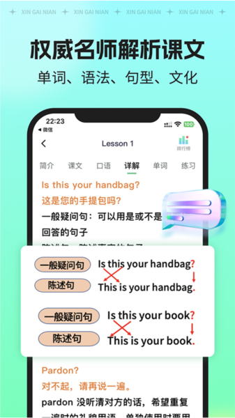新概念AI版提供名师领读经典课文,配有原创插画,真人地道发音。智能口语测评,每个测评有详细解读,让口语更纯正流利。应试真题演练,名师详解每道真题。AI智能多题型复习演练,根据记忆曲线和错题本智能推荐复习方案。
