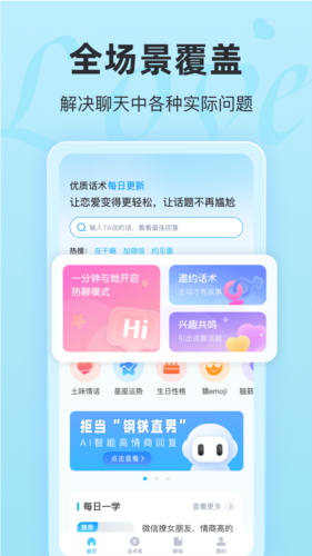 获取全新恋爱教学推荐,多种话术聊天享受;