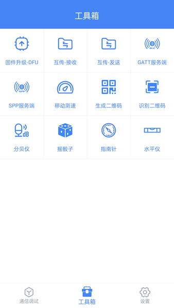 调试全能王是一款简洁好用的调试工具,在这里为各位用户们提供了丰富的功能,可对蓝牙、网络、USB进行调试,提供了诸多服务和协议调试的选择。软件中的工具箱还集成了诸多的实用工具,支持文件的互传,对网络进行测速,有需要的用户快来下载使用吧。