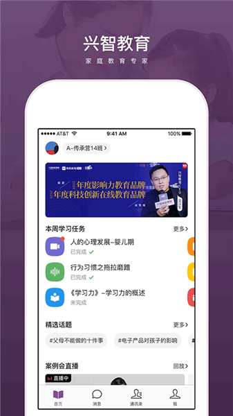 兴智教育app是一款由江西爱美创教育科技有限公司发行的专门适用于家里有0-18岁孩子的家庭教育软件,很多家长会对孩子的发展束手无策,在孩子教育方面面临很多问题,在孩子的学习习惯上、青春期沟通上、性格习惯等等,这些都是家长和孩子之间遇到的各种难题。该软件就是会给家长们提供优质的家庭教育,带来优质的教学服务,让孩子与家长之间能保持良好的沟通和交往。