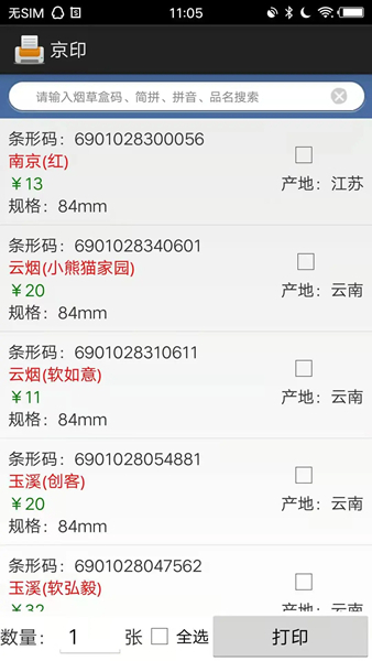 支持搜索打印,可以搜索产品,有相关的信息,快速查找打印;