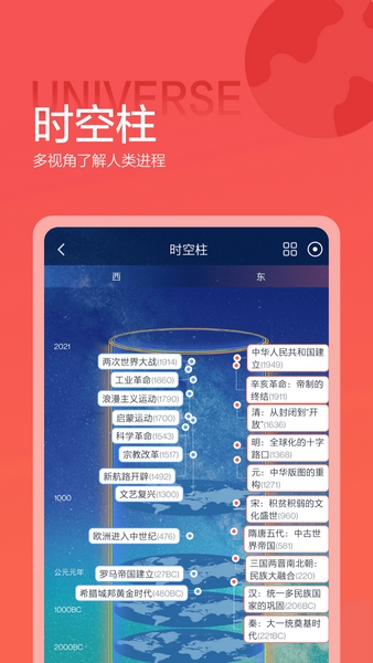 2、拥有一条时间轴,从宇宙大爆炸到地球起源,从生命起源到现代文明,一条线给你全讲解;