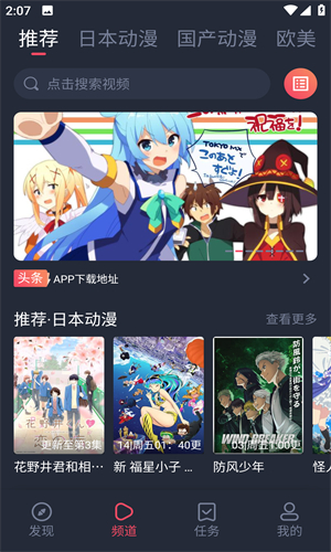 1、如果漫迷想追更最新动画内容,首页会去同步上线更新当下最新、最热门的番剧作品。