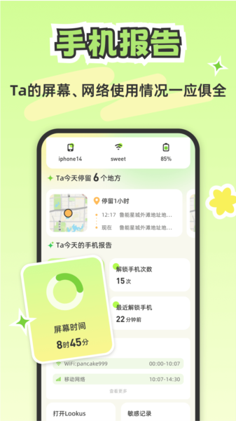 想为TA点夜宵但是不知道对方是否睡觉?全天手机使用情况都在这儿,轻松get对方手机屏幕使用情况!