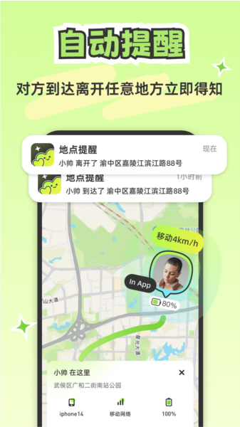 还在担心TA去了哪忘记告诉你?上车下车、离开达到任意地方自动发送报备,不再整日担心~